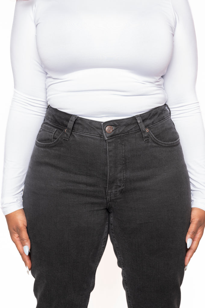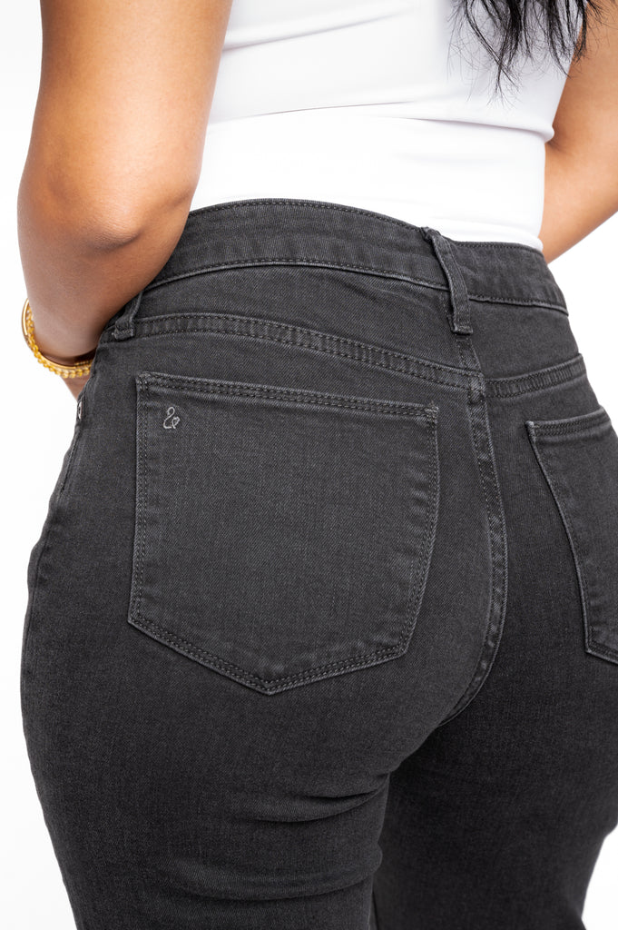 Miriam Mid Rise Straight Crop Jean in Washed Black